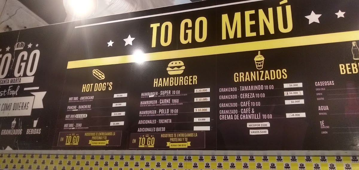 The menu at To Go - Prepararlo Como Quieras offers a variety of flavorful options that cater to different tastes, with a clear focus on fast, delicious, and customizable meals. One standout item is the Perro Caliente, a satisfying hot dog that can be customized with a range of toppings, making it a perfect choice for those seeking both convenience and flavor. The restaurant also excels in serving traditional Colombian snacks and fast food with a twist, featuring dishes like empanadas and arepas, ensuring there's something for everyone. The prices are reasonable, making it a great spot for a quick, satisfying bite without breaking the bank. Whether you’re in the mood for something savory like the Perro Caliente or prefer the taste of a freshly made empanada, the menu delivers quality and variety, all in a welcoming, casual setting.